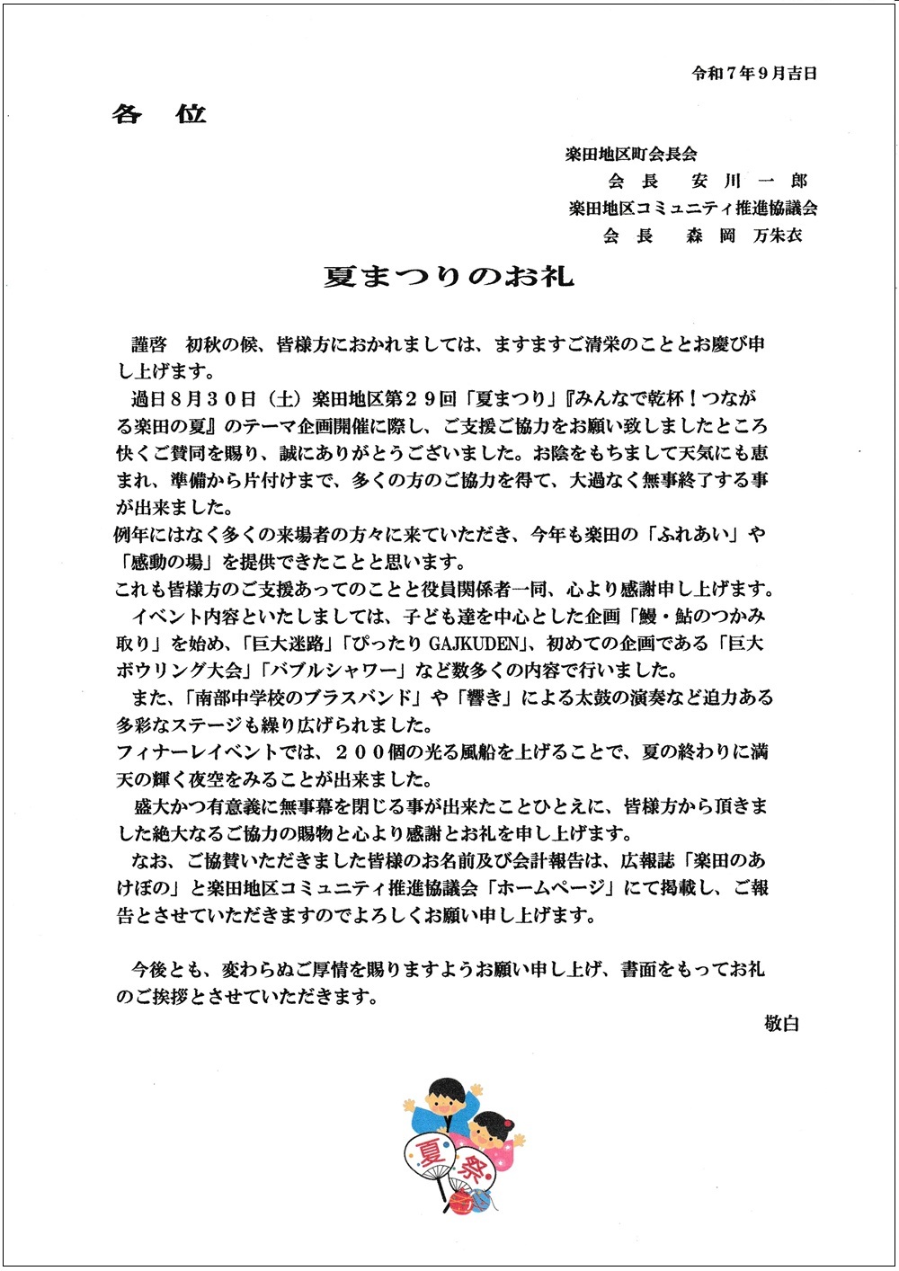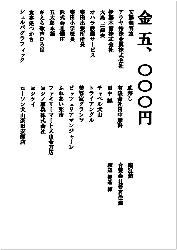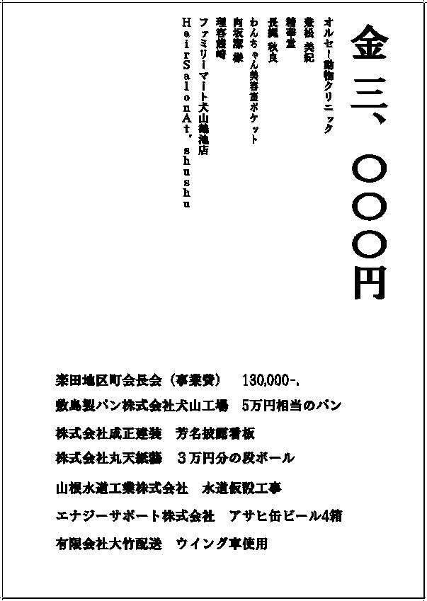 夏まつり協賛芳名