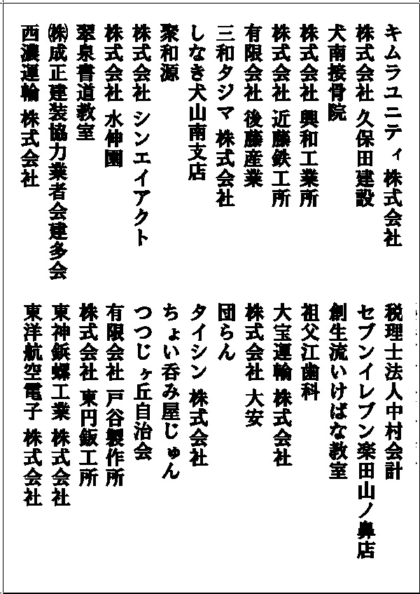 2025年度(令和7年度) 協賛芳名一覧